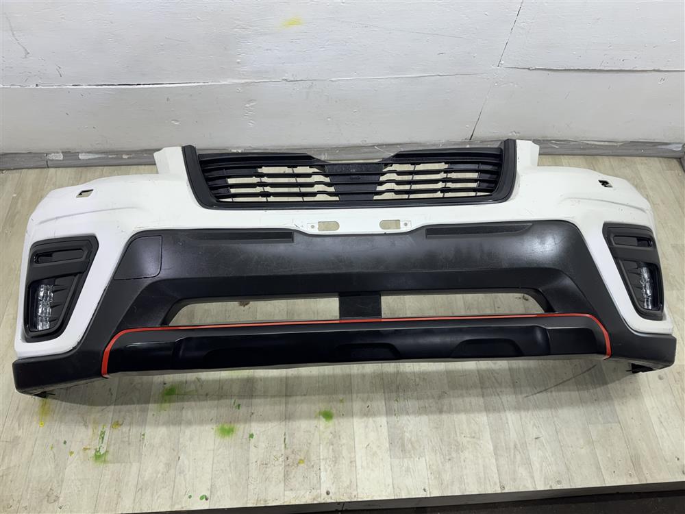 д.Бампер FRONT 2018-2021 белый в сборе: решетка SPORT(нижняя часть), противотуманки LED(прямоугольные), накладки противотуманок SPORT, накладка бампера SPORT для SUBARU FORESTER S14 SK (03.2018-2021)