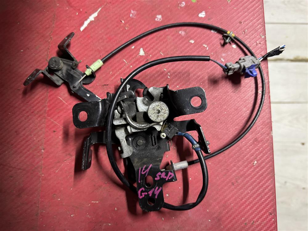 Замок капота (электромеханический) в сборе (замок, рычаг замка капота+тросик) серая фишка 2 контакта правый руль для SUBARU IMPREZA + XV G14/G24 GK/GT + XV (03.2017-Н.В.)
