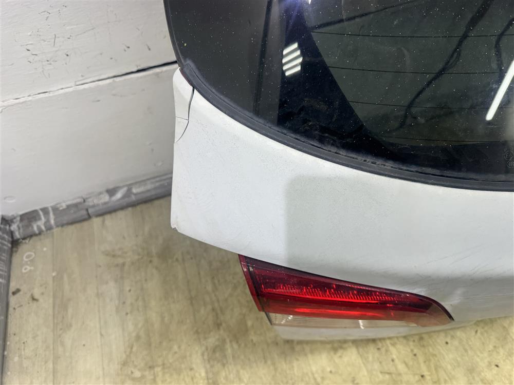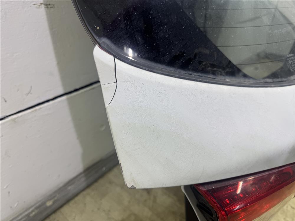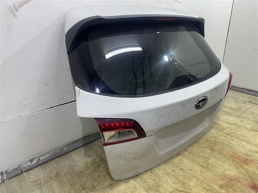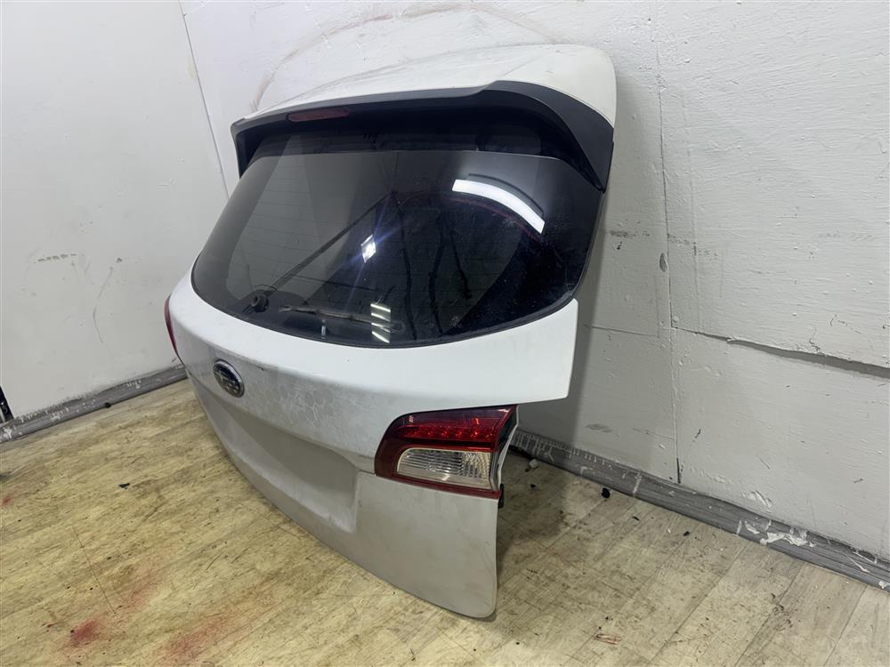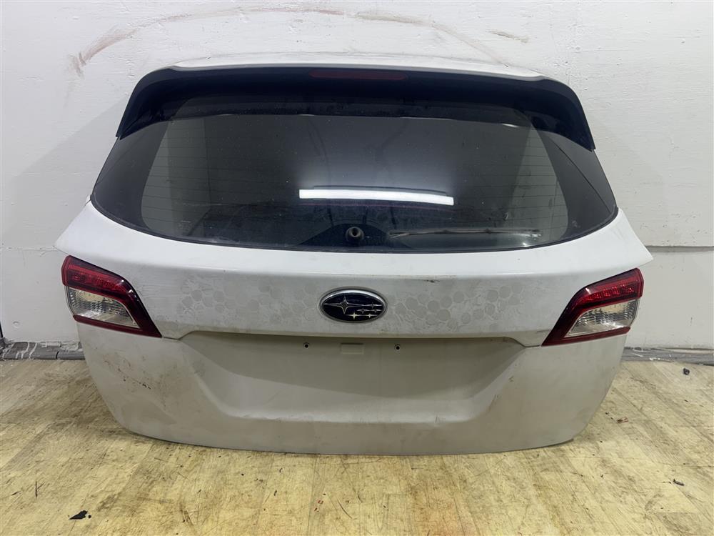 Крышка багажника в сборе ПОД автодоводчик белая БЕЗ ЗАМКА, БЕЗ МОТОРЧИКА СТЕКЛООЧИСТИТЕЛЯ УЦЕНКА скол на накладке справа, тычок слева внизу для SUBARU OUTBACK(OBK) B15 BS (05.2015-04.2019)